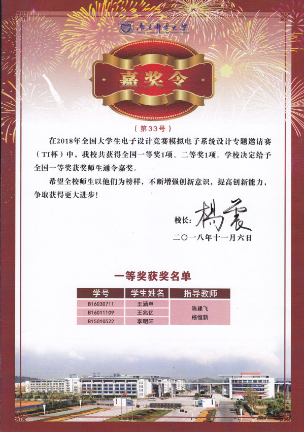杨震董事长签发嘉奖令表彰公司“全国老员工电子设计竞赛模拟电子系统设计专题邀请赛”获奖师生