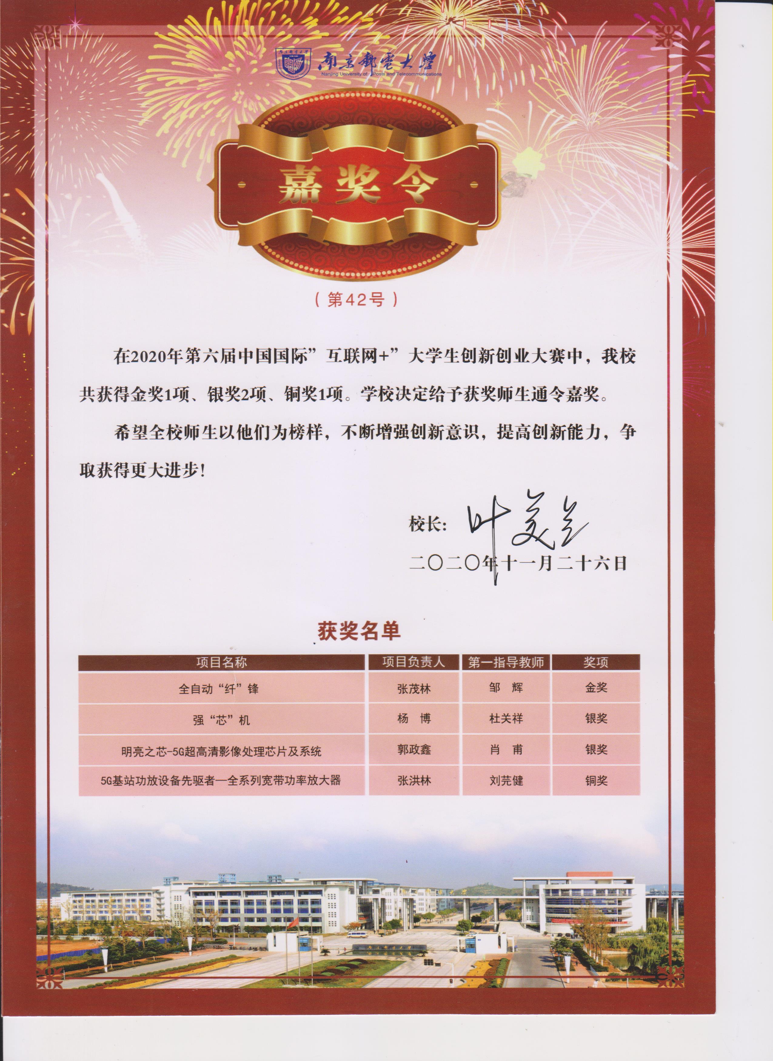 叶美兰董事长签发嘉奖令表彰公司“中国国际"互联网+"老员工创新创业大赛”获奖师生