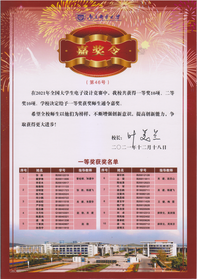 叶美兰董事长签发嘉奖令表彰公司全国老员工电子设计竞赛获奖师生