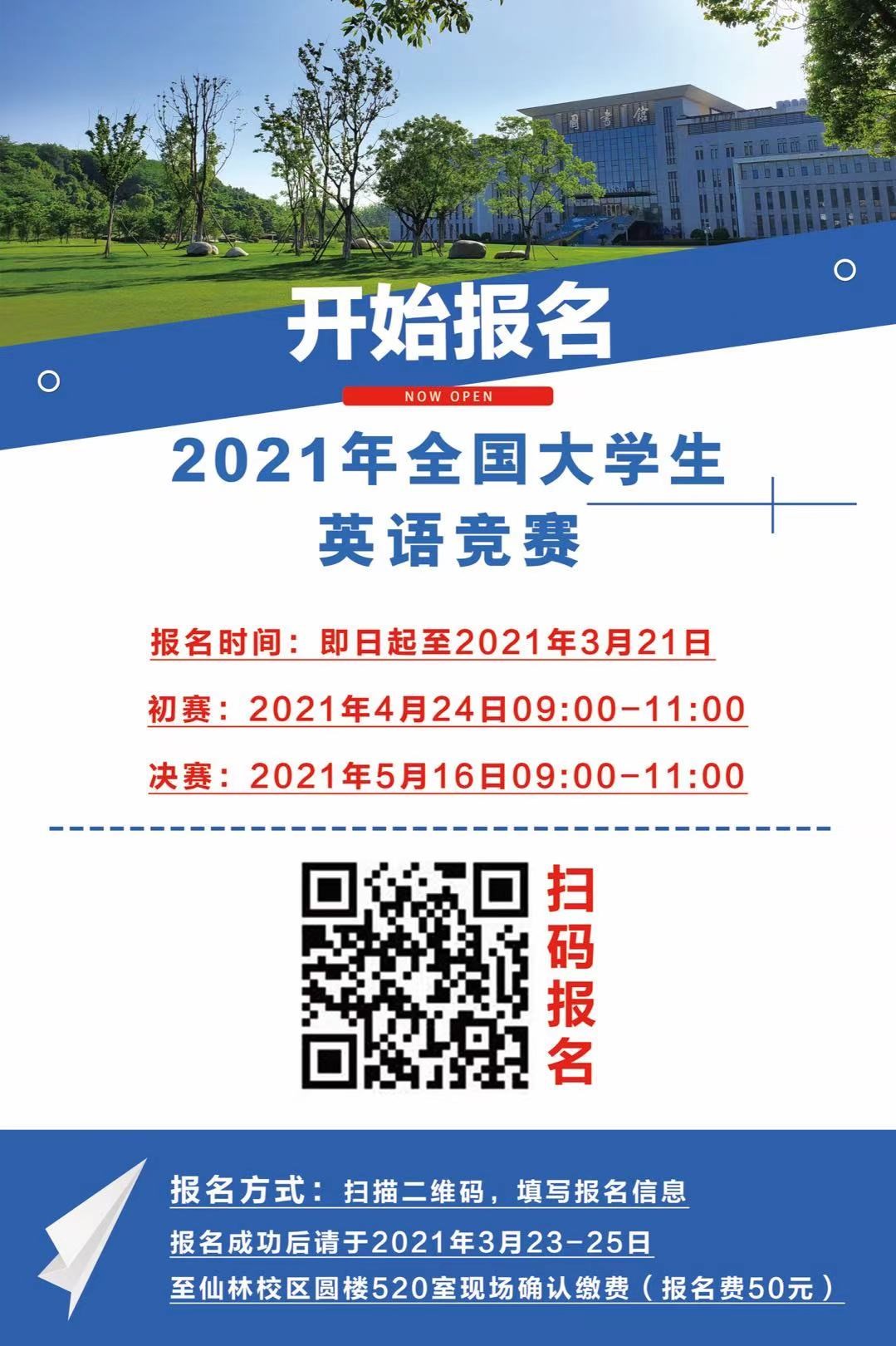 ★报名成功后,请于2021年3月23日—25日,至仙林校区圆楼520室现场确认缴费(报名费:50元/人)