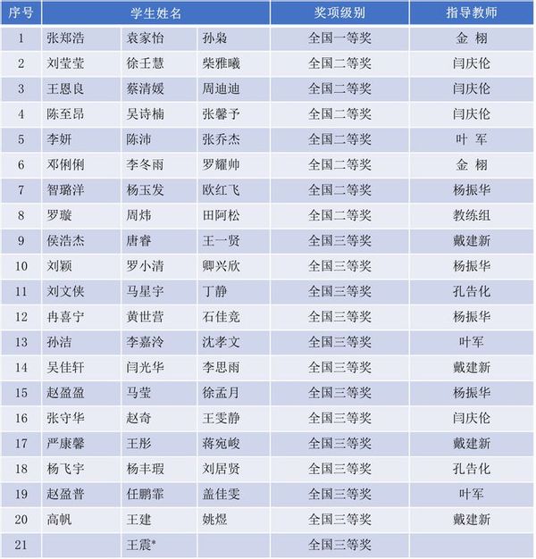 获奖员工名单(*号表示该生与其他高校员工联合组队参赛)