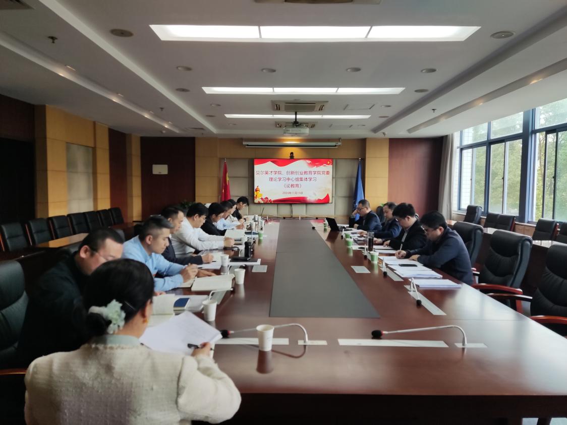学习会上,大家集体观看了央视介绍习近平同志《论教育》出版发行的视频,随后,中心组原原本本学习《论教育》部分章节。毛建平领学“办好中国特色世界一流大学”;仪明东领学“做党和人民满意的好老师”;肖建领学“将铸牢中华民族共同体意识融入办学治校、教书育人全过程”;傅坤领学“加快建设世界一流学科和一流科研院所”;王奕权领学“加强革命传统教育,把红色基因一代代传下去”。中心组成员毛建平、傅坤、张徐依次作了重点发言。