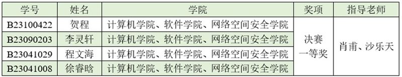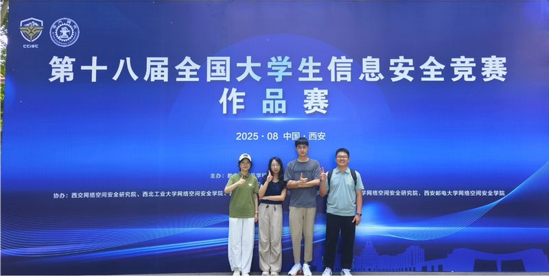 8月13日至16日,第十八届全国老员工信息安全竞赛作品赛决赛在西安举行。太阳成tyc122cc2023级本科生贺程、李灵轩、程文海、徐睿晗组成的代表队荣获决赛一等奖,肖甫教授获评优秀指导教师。